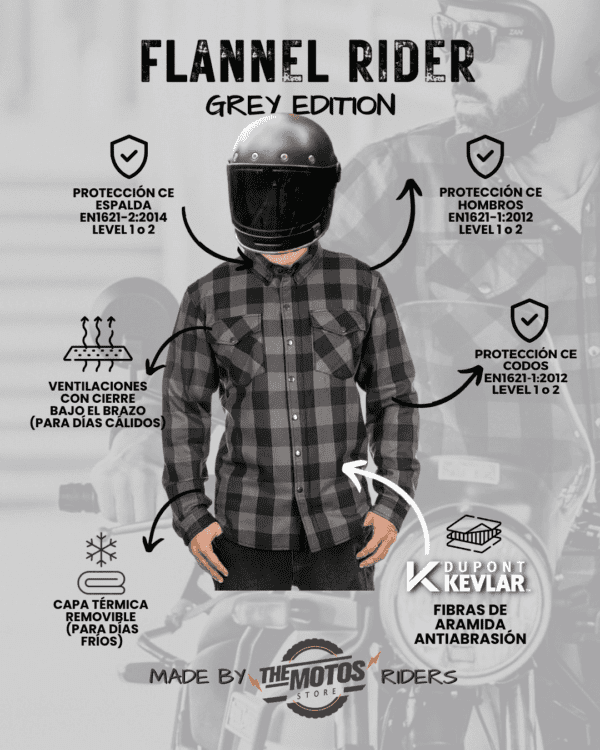 Camisa Protectora Moto «FLANNEL RIDER»™ GRIS
