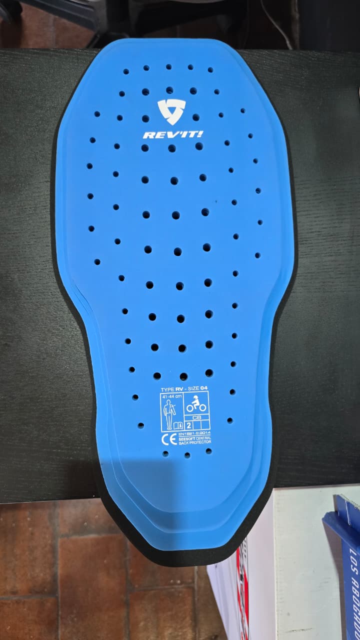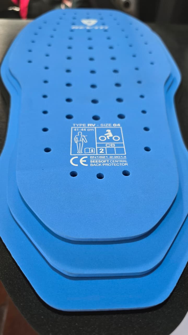 Protección para motociclista en color negro con detalles en azul, diseñada para brindar mayor seguridad y comodidad en la conducción. Un accesorio esencial para complementar tu equipamiento y rodar con confianza.